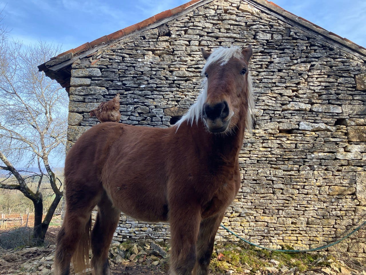 Nadya est la benjamine du troupeau : une jeune jument Comtoise de 2 ans. Elle ne fait pas encore partie de notre programme de reproduction, mais elle grandit paisiblement au sein du groupe. Nadya est une jument calme, attentive, avec une grande capacité d’apprentissage. Elle dégage une présence rassurante et touchante par sa douceur.